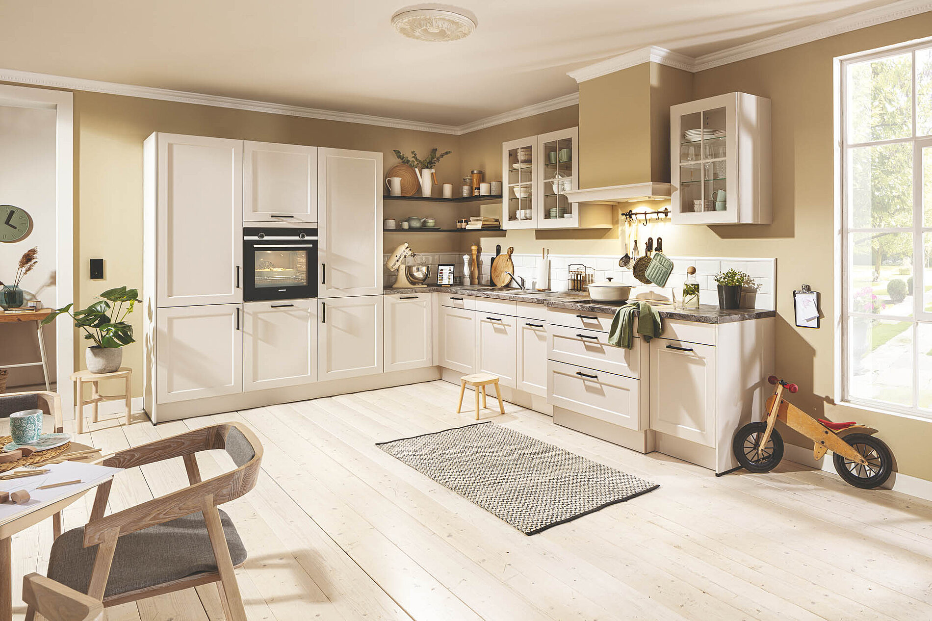 Eine Landhausküche ist mehr als nur ein Trend, sie ist ein Klassiker, eine zeitlose Schönheit. Verspielte Rahmenfronten, zarte Farben und handwerkliche Qualität verleihen ihr einen Charakter, der Generationen überdauert.