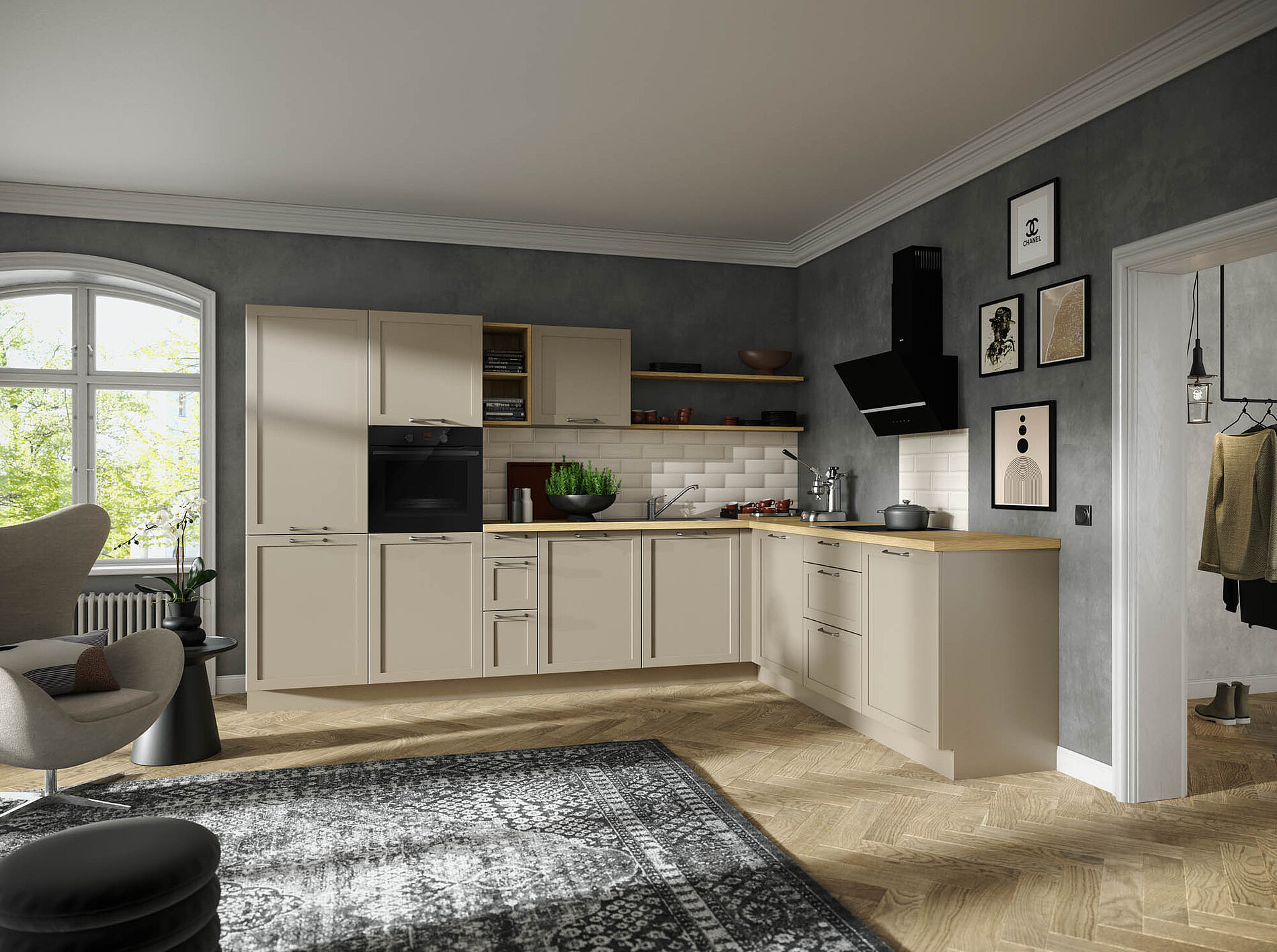 Ob edles Massivholz, sanft mattierte Lackoberflächen oder charmante Keramikspülen – jede Komponente ist mit Liebe zum Detail gestaltet. Hier steckt spürbare Wertarbeit drin, die Sie jeden Tag aufs Neue genießen.