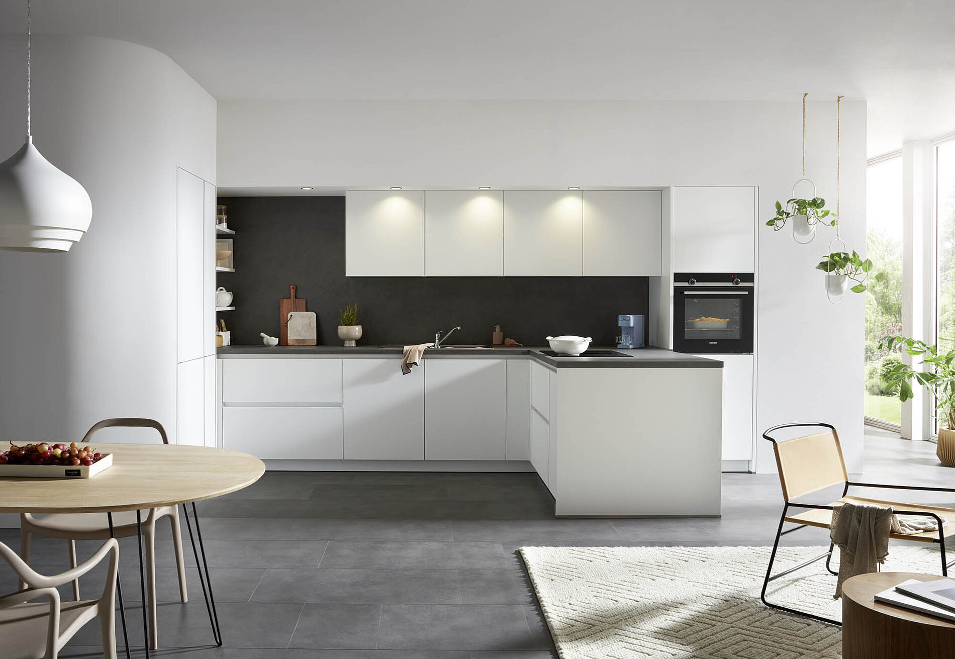 Grifflose Küchen zählen zu den klaren Favoriten im modernen Küchendesign. Ihr reduzierter Look bringt Ruhe, Eleganz und zeitlose Ästhetik in den Raum, sorgt gleichzeitig für eine durchdachte Funktionalität. Ohne sichtbare Griffe wirken Küchenfronten wie aus einem Guss. Die glatten Flächen lassen Räume größer erscheinen und unterstreichen einen minimalistischen, aufgeräumten Stil. Besonders in offenen Wohnküchen fügt sich eine grifflose Optik harmonisch ins Gesamtbild ein.