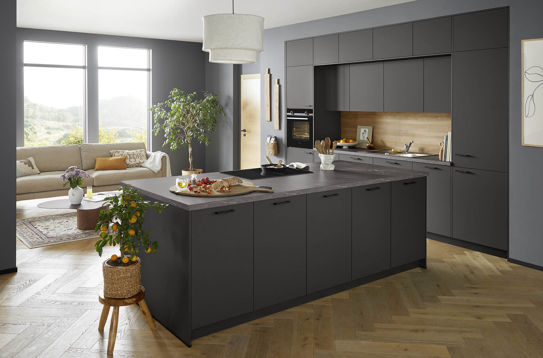 Offene Küchenkonzepte verbinden Kochen, Essen und Wohnen. Eine Kücheninsel wird zum kommunikativen Mittelpunkt – ein Ort, an dem man gemeinsam schnippelt, lacht und genießt.