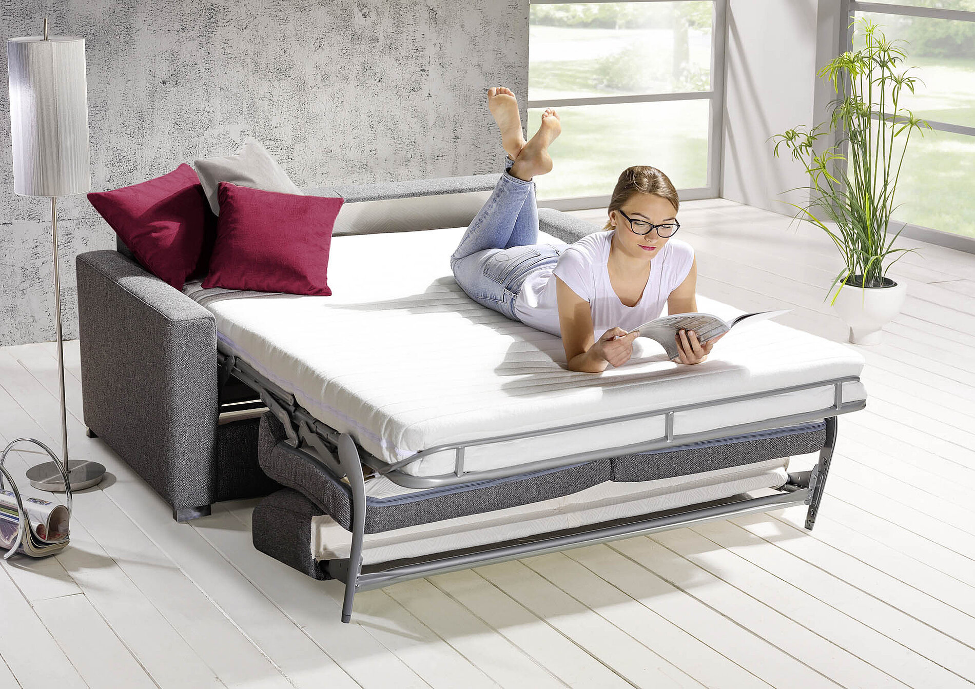 Dank hochwertiger Polsterungen, durchdachter Klappmechanismen und langlebiger Materialien bieten unsere Schlafsofas sowohl beim Sitzen als auch beim Schlafen höchsten Komfort – ideal für spontanen Besuch oder die tägliche Nutzung.