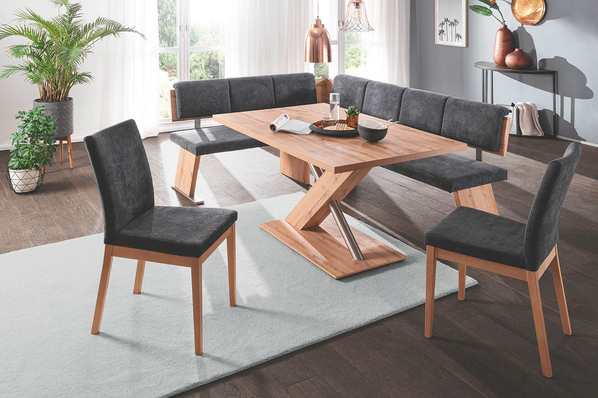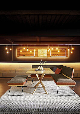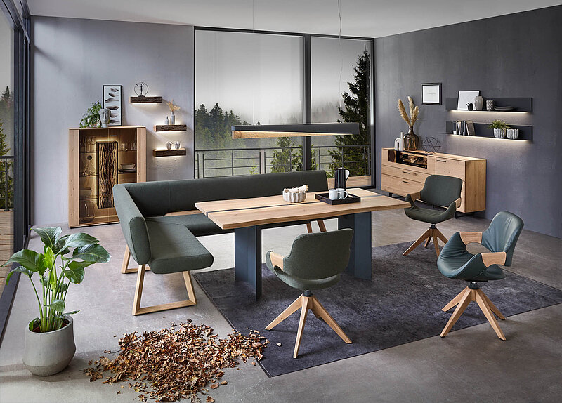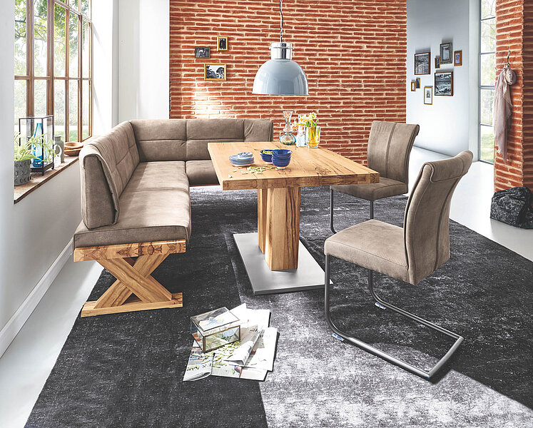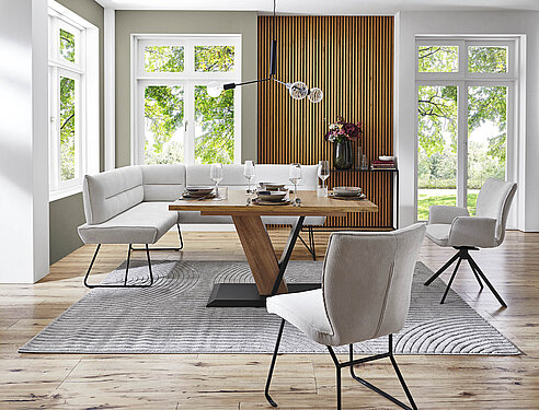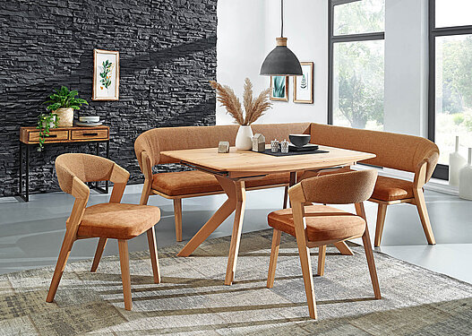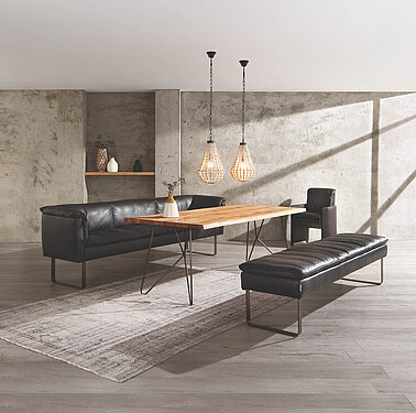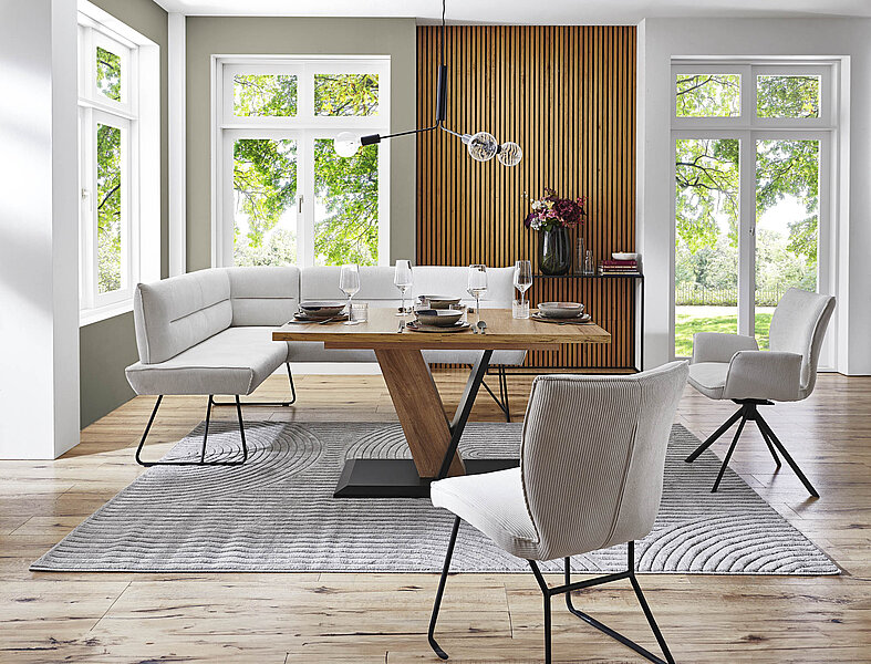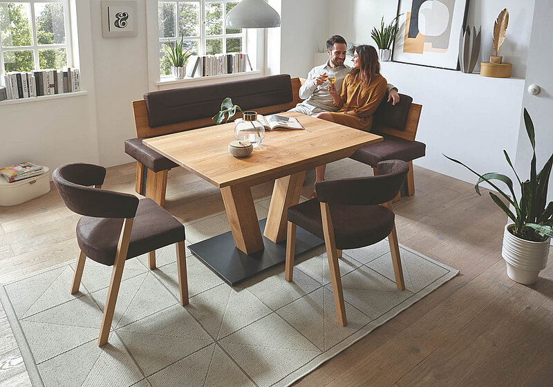 Bänke bieten besonders flexible Sitzlösungen. Sie sind ideal für Familien, größere Essbereiche oder als platzsparende Lösung an der Wand. Von schlichten Holzbänken bis zu komfortabel gepolsterten Sitzbänken mit Lehne oder Stauraum vereinen sie Gemütlichkeit mit Funktion.